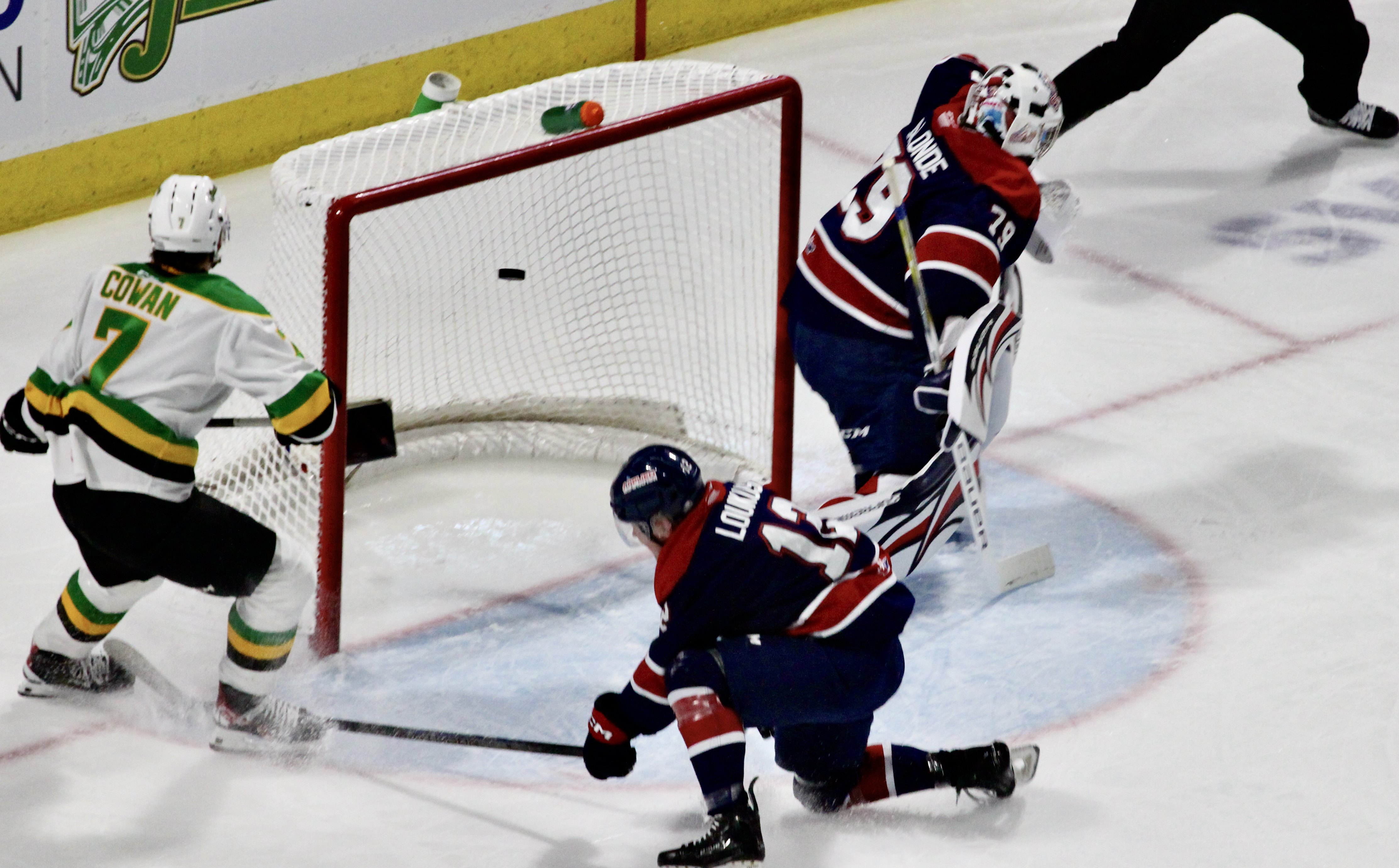 Cowan scored on a deflection at 12:46 and then Jacob Julien connected on another power play opportunity just 52 seconds later and London found themselves up by four.