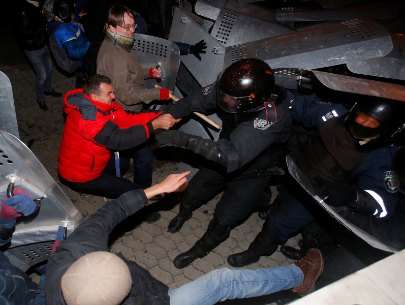 As darkness fell, the conflict escalated further with protesters blockading key government buildings in Kyiv with cars, barricades and tents. The state security service, meanwhile, announced an investigation into opposition leaders on suspicion of attempting to seize power.
