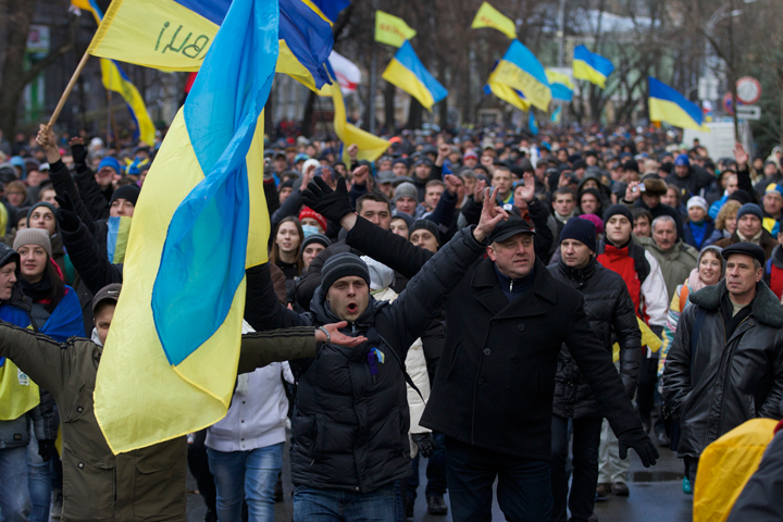 KYIV, Ukraine – Hundreds of thousands of Ukrainians rallied Sunday in Kyiv, denouncing President Viktor Yanukovych’s decision to turn away from Europe and move toward Russia. It was the country’s biggest protest since its pro-democracy Orange Revolution in 2004.