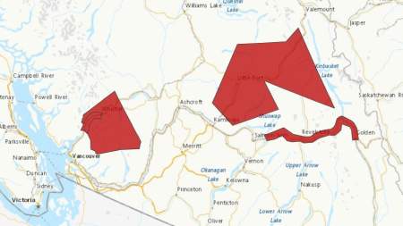 Slightly to the northeast, the North Thompson area is also under the same snowfall warning.