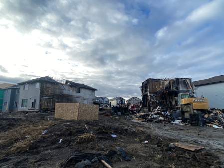 Edmonton Fire Rescue Services (EFRS) said two homes under construction and one home that was recently completed have been destroyed by fire in Edmonton’s Cy Becker neighbourhood.