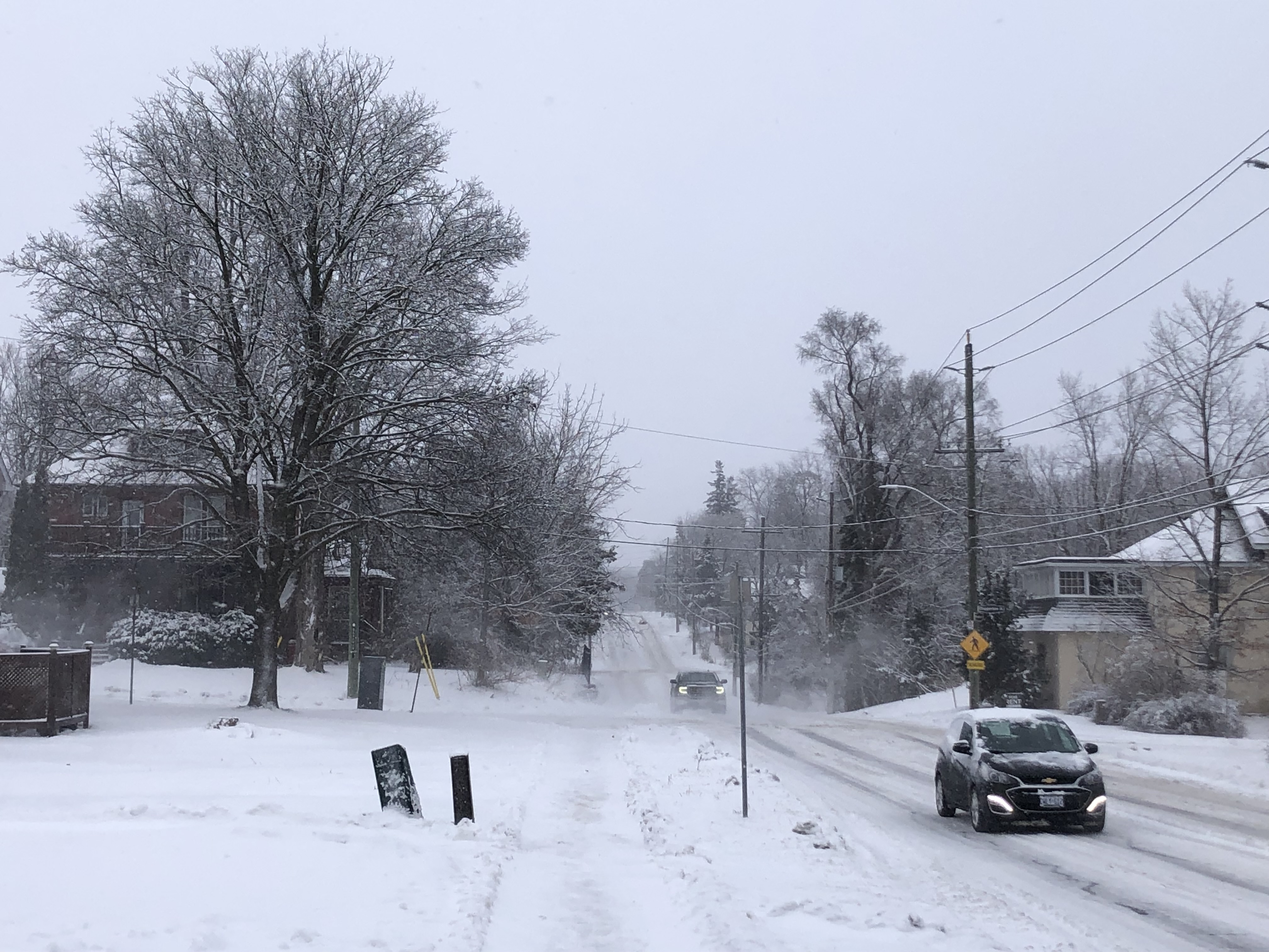 Hazards for residents include poor visibility in areas of blowing snow, icy and slippery road conditions, and additional snowfall amounts of 2 cm to 5 cm.