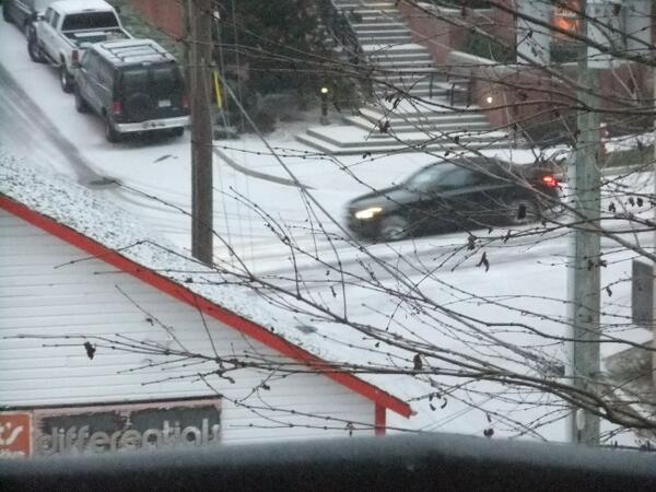 Light snow is falling across the South Coast this morning, making for slippery road conditions on the Monday commute.