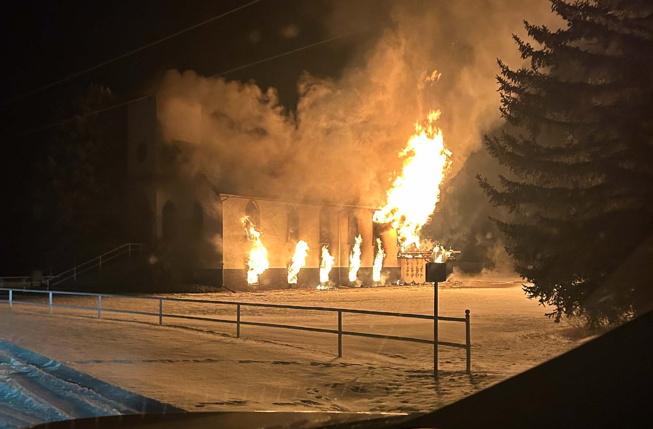 Firefighters were called to the historic church on Range Road 242 in Wheatland County on Wednesday around 6:30 a.m. They arrived to find the church engulfed in flames.