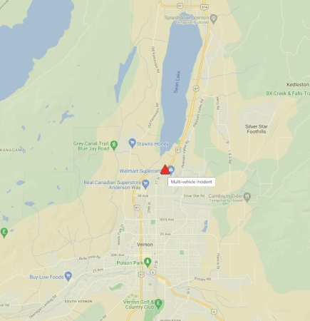 According to DriveBC, the highway first shut down around 10:30 a.m. southbound between 48th Avenue and Stickle Road in Vernon.