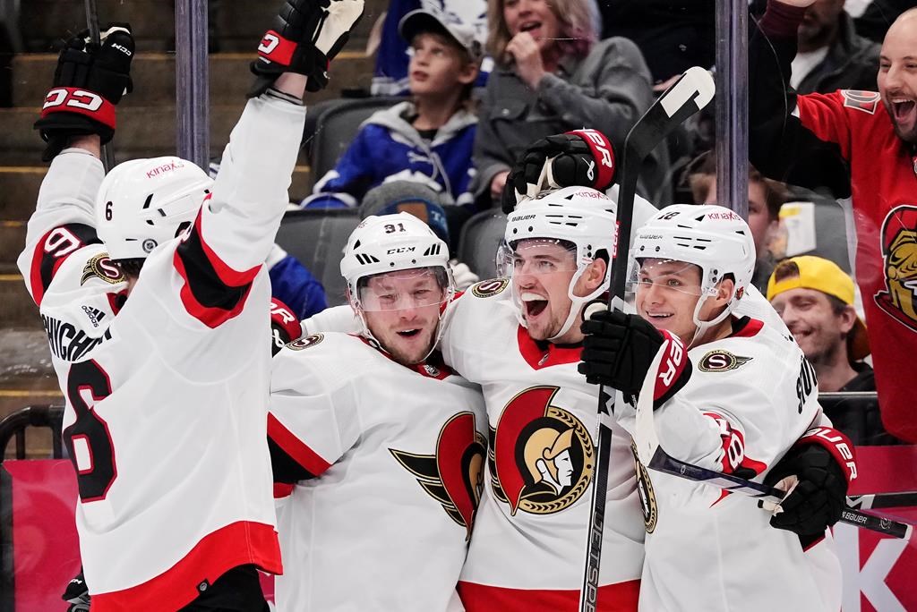Parker Kelly and Brady Tkachuk added the other goals for Ottawa (13-17-0), which improved to 2-1-0 against the Maple Leafs this season.