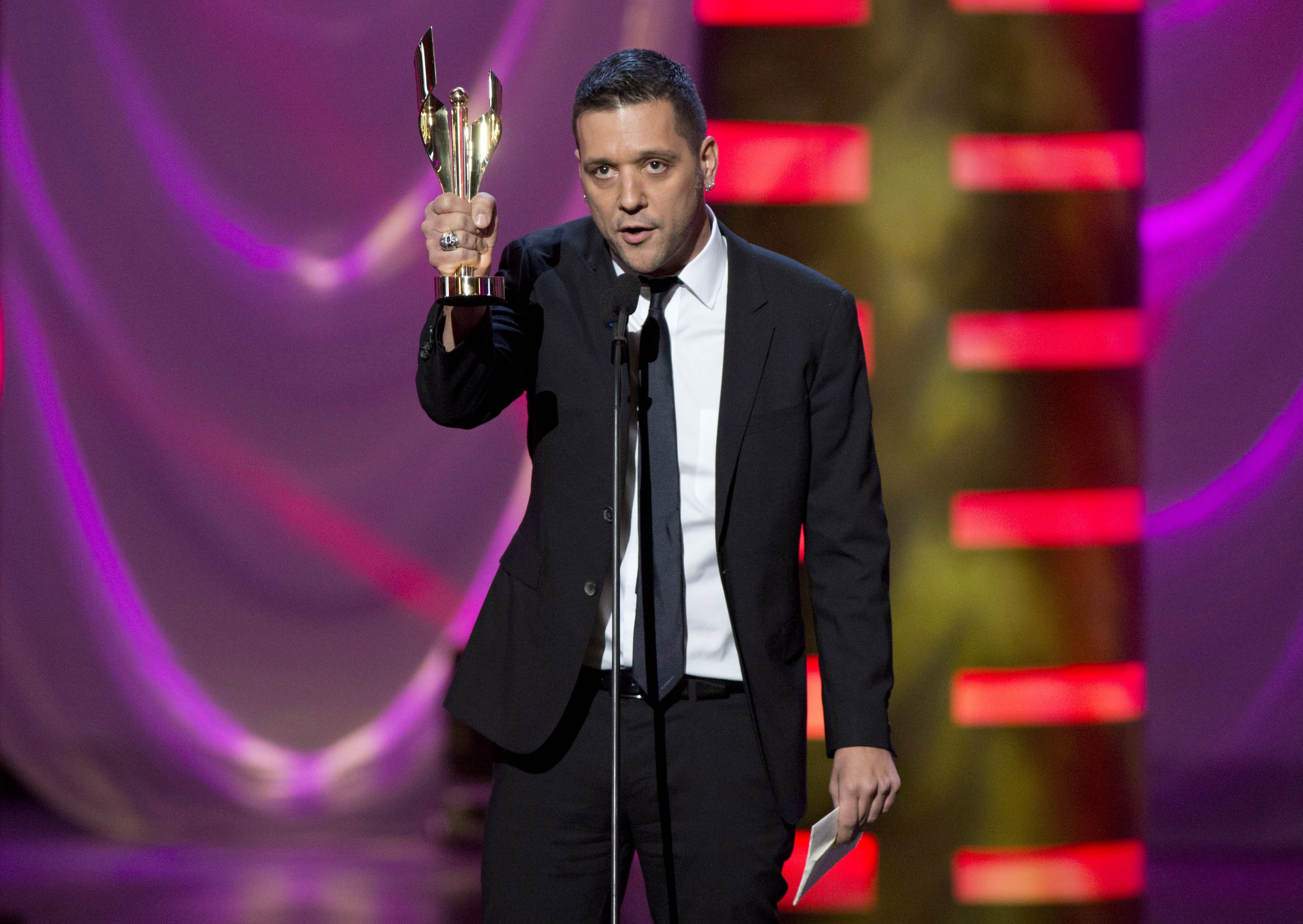 George Stroumboulopoulos reacts after winning the award for best variety host for his show “George Stroumboulopoulos Tonight” at the Canadian Screen Awards in Toronto on Sunday, March 3, 2013. THE CANADIAN PRESS/Frank Gunn