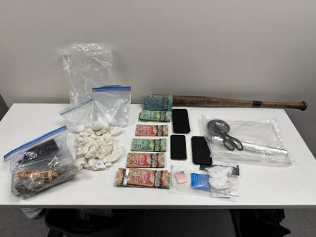 A 49-year-old man, a 37-year-old and 31-year-old woman, and a 16-year-old male teenager were arrested. A search of the vehicle led to the seizure of over 1 kg of crack cocaine, according to police, along with Canadian currency, drug paraphernalia, and a baseball bat.