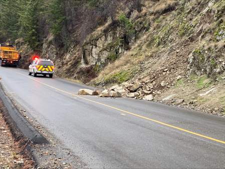 Drive BC say it is aware of the incident and that crews from AIM Roads as well as the North Westside Fire Department are on scene, with fire crews directing single-lane alternating traffic around the debris.