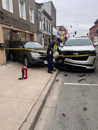 Police closed Dundas Street East between John Street and Centre Street while emergency crews worked to clear the scene.