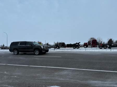 According to an RCMP release, the collision involved a passenger vehicle, a snow plow and a semi-truck. Police said the collision happened because of white-out conditions following the snow plow.