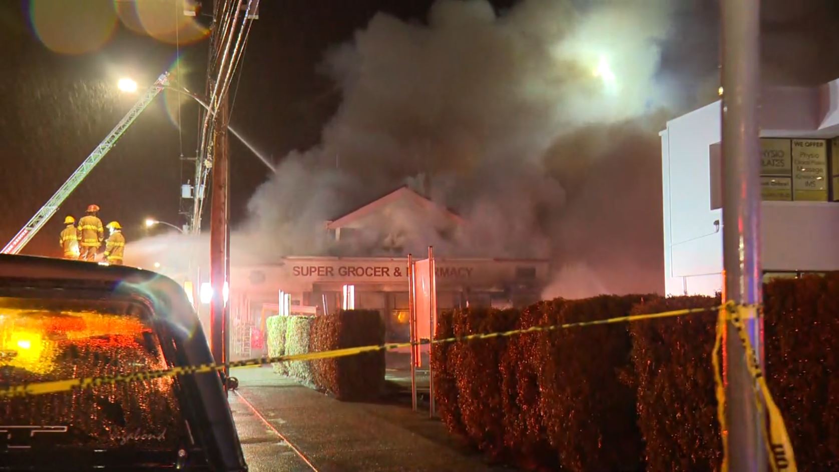 The fire ignited around 5 p.m. on Friday at the Super Grocer and Pharmacy on No. 1 Road.