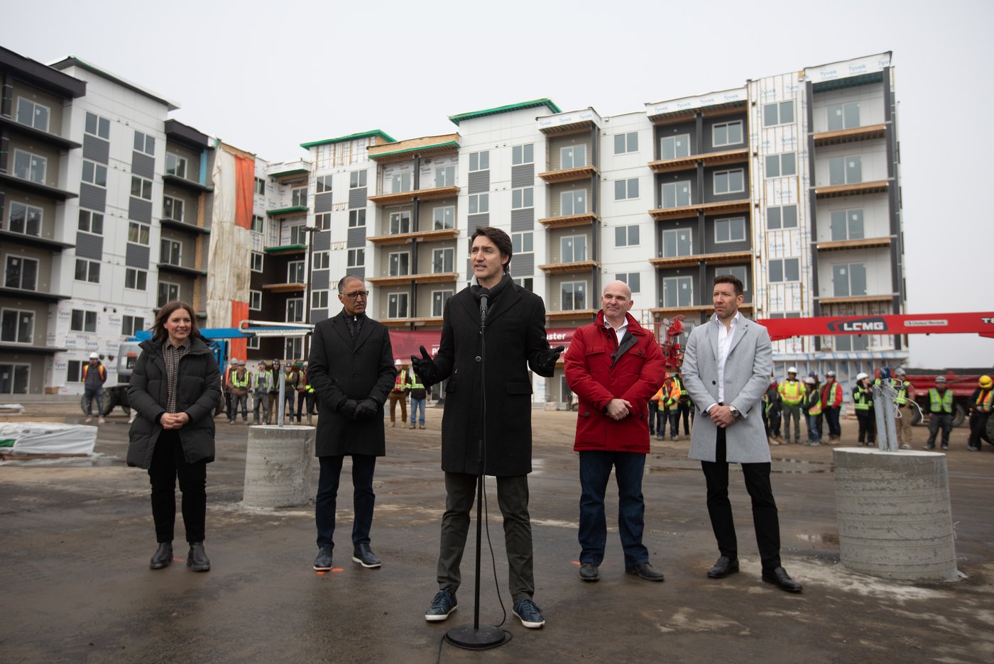“We’re changing the way housing gets built in this country,” Trudeau said at an apartment complex construction site in southwest Edmonton.