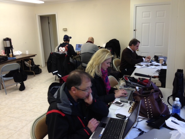 We followed directions from resources producer Mark Blanchard, a wizard when it came to the logistics of news gathering, especially in a crisis. Within minutes of the shooting, Mark had called Sandy Hook, tracked down and rented empty retail space in the core of the village. For the next few days thanks to Mark’s arrangements, we worked from a spacious, bright location about 50 metres from the central intersection in this friendly community. Our space used to be a barber shop. Our team of a dozen had Wi-Fi, work tables, heat, and to the envy of the international media, our own washroom.