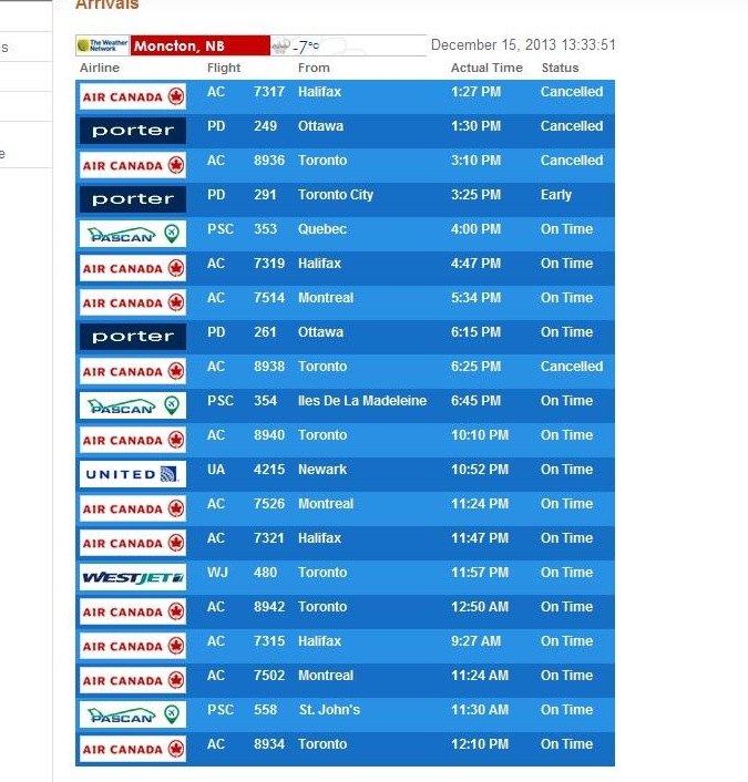 Greater Moncton International Airport: http://www.cyqm.ca/en/home/flightinformation/arrivals.aspx