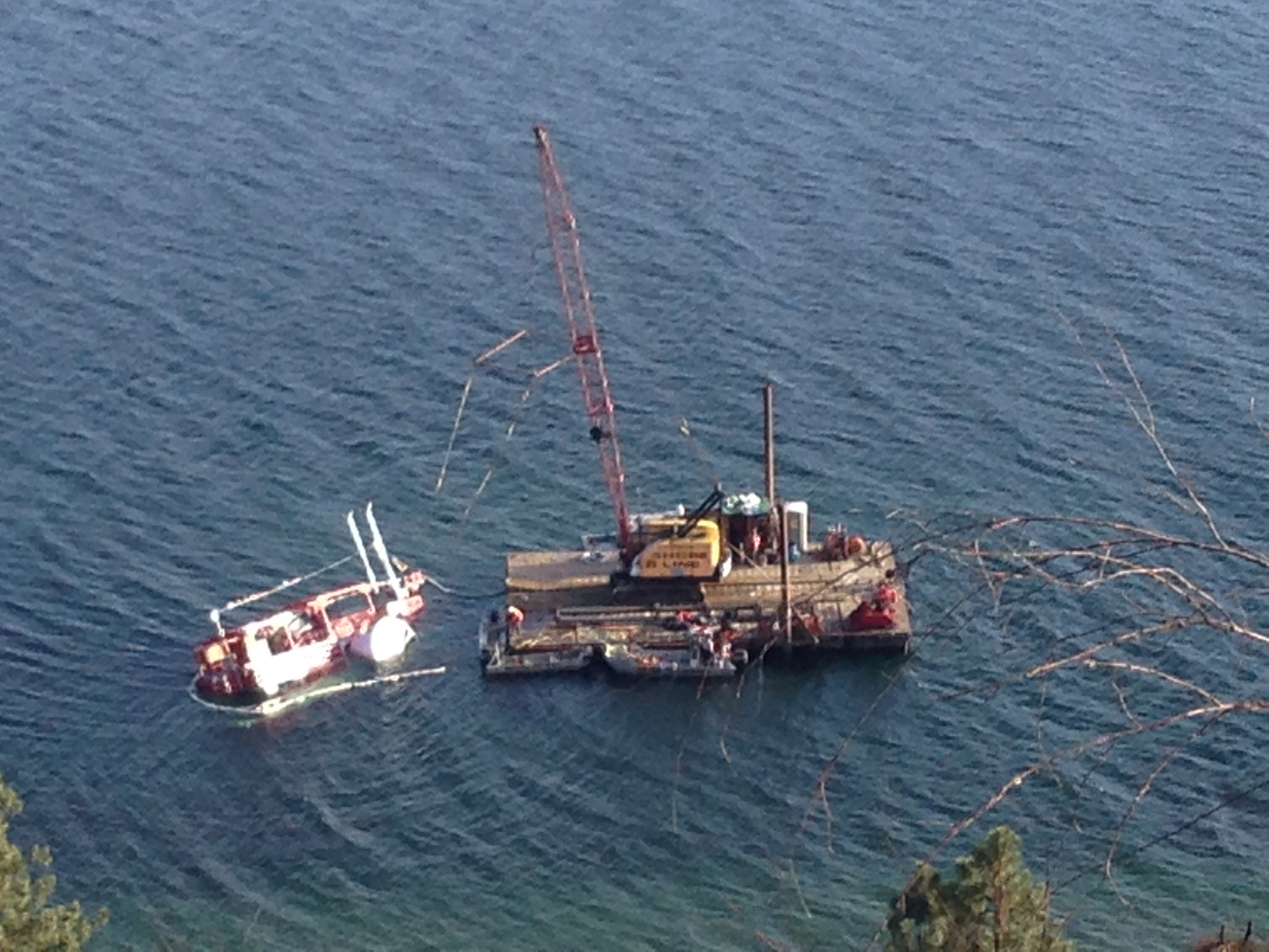WEST KELOWNA — A sunken ship off the shore of Kalamoir Park on Okanagan Lake is on its way out of the water.