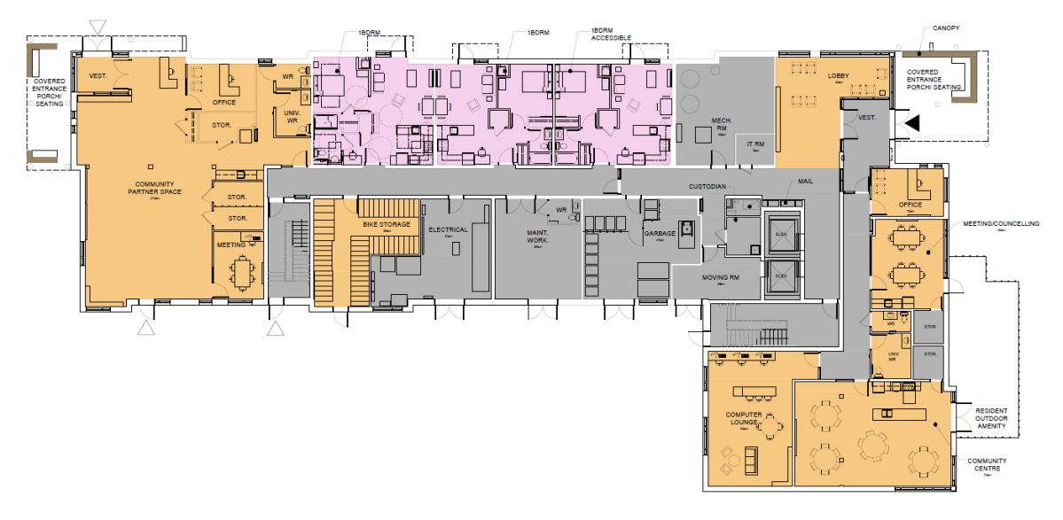 The breakdown of which units will be RGI, affordable, or market rate has not yet been decided, but Chisholm says at least 18 of the units will be RGI to replace the ones torn down at the beginning of the project.