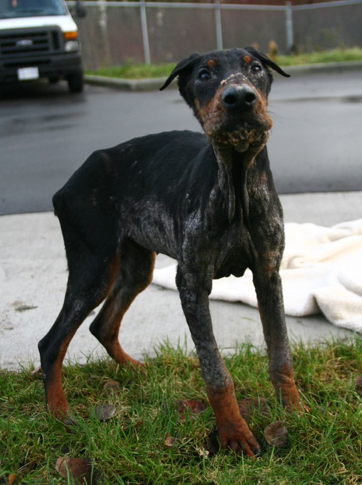 Prudence, a 5 to 6 month old female Doberman, came to them after she was dropped off at a Surrey vet last Friday. She weighed only 28 pounds. “A normal weight for a Doberman her age would be between 40 to 45 pounds,” says centre manager Kim Marosevich.