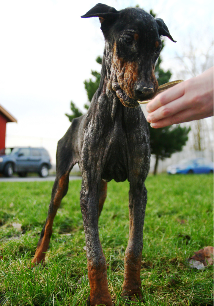 She is also covered with demodectic mange, which is not contagious, but is exacerbated by her poor immune system. “It’s entirely preventable and entirely avoidable,” says Marosevich.