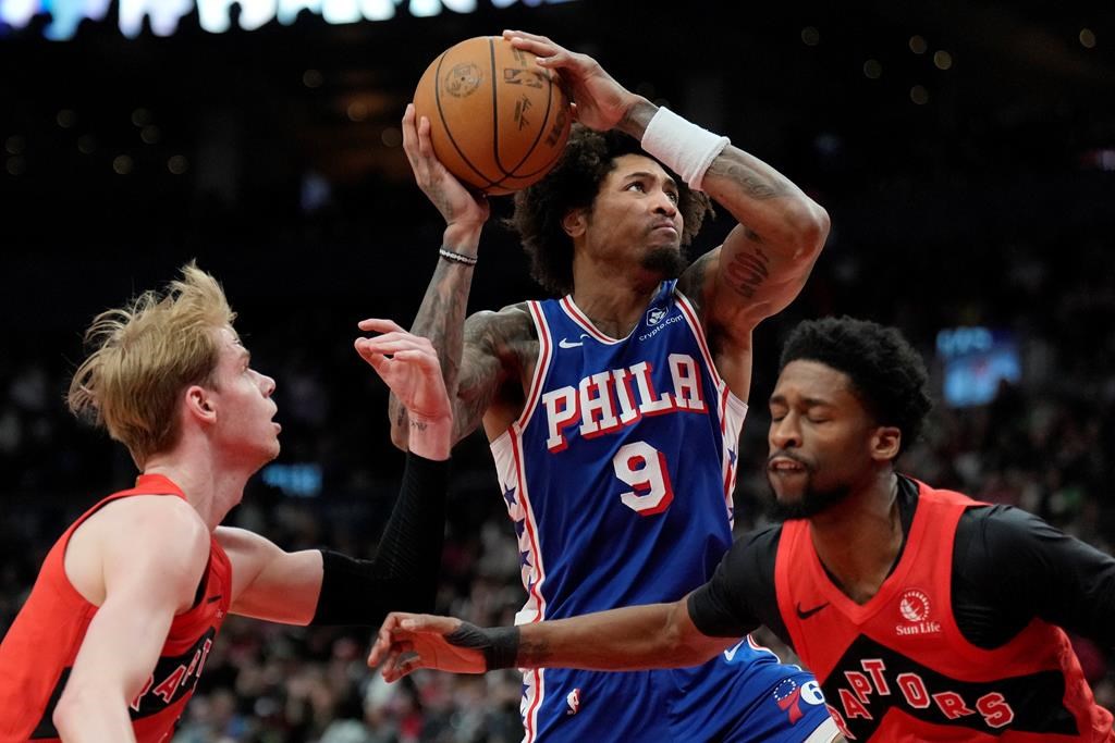 TORONTO – A deflected pass bounced to Toronto Raptors forward Bruce Brown who immediately passed it up court to a streaking Jordan Nwora, who defied two Philadelphia 76ers closing in on him and went for an emphatic dunk.