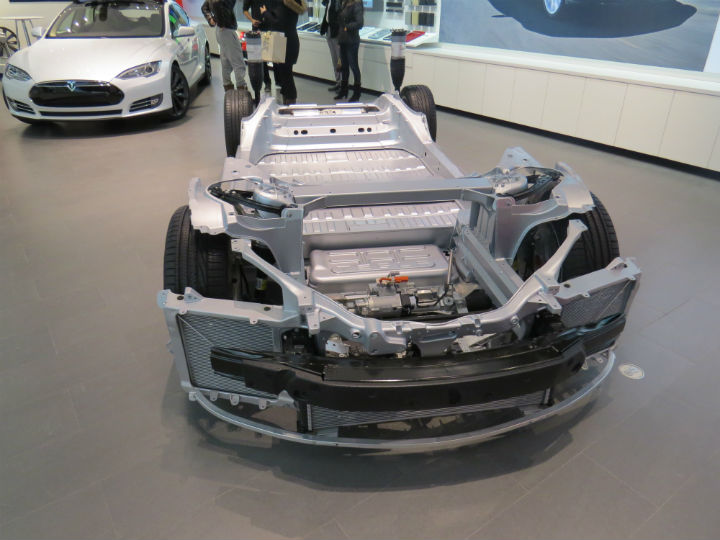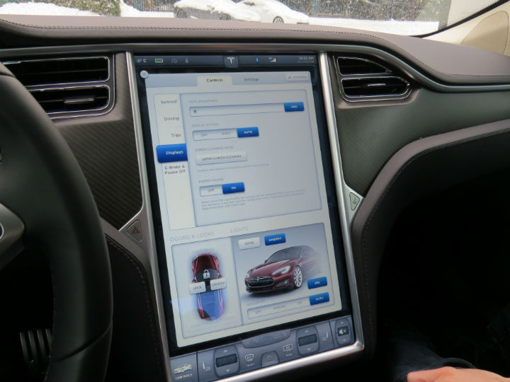 As for the biggest question, the battery power: the top-tier (the model I was outfitted with) 85-kWh lithium-ion battery pack advertises a range of 482 KMS, but the lighter, less-expensive 40-kWh and 60-kWh packs respectively, will come later, offering claimed ranges of up to 257 KMS and 386 kilometres, respectively. The Model S comes standard with an onboard 10-kW charger, while a 20-kW unit can be purchased initially or retrofitted for $1,600. It will cut recharge time on the mega 85-kWh pack from eight hours to about four, depending on the amp and voltage ratings of the outlet being used.