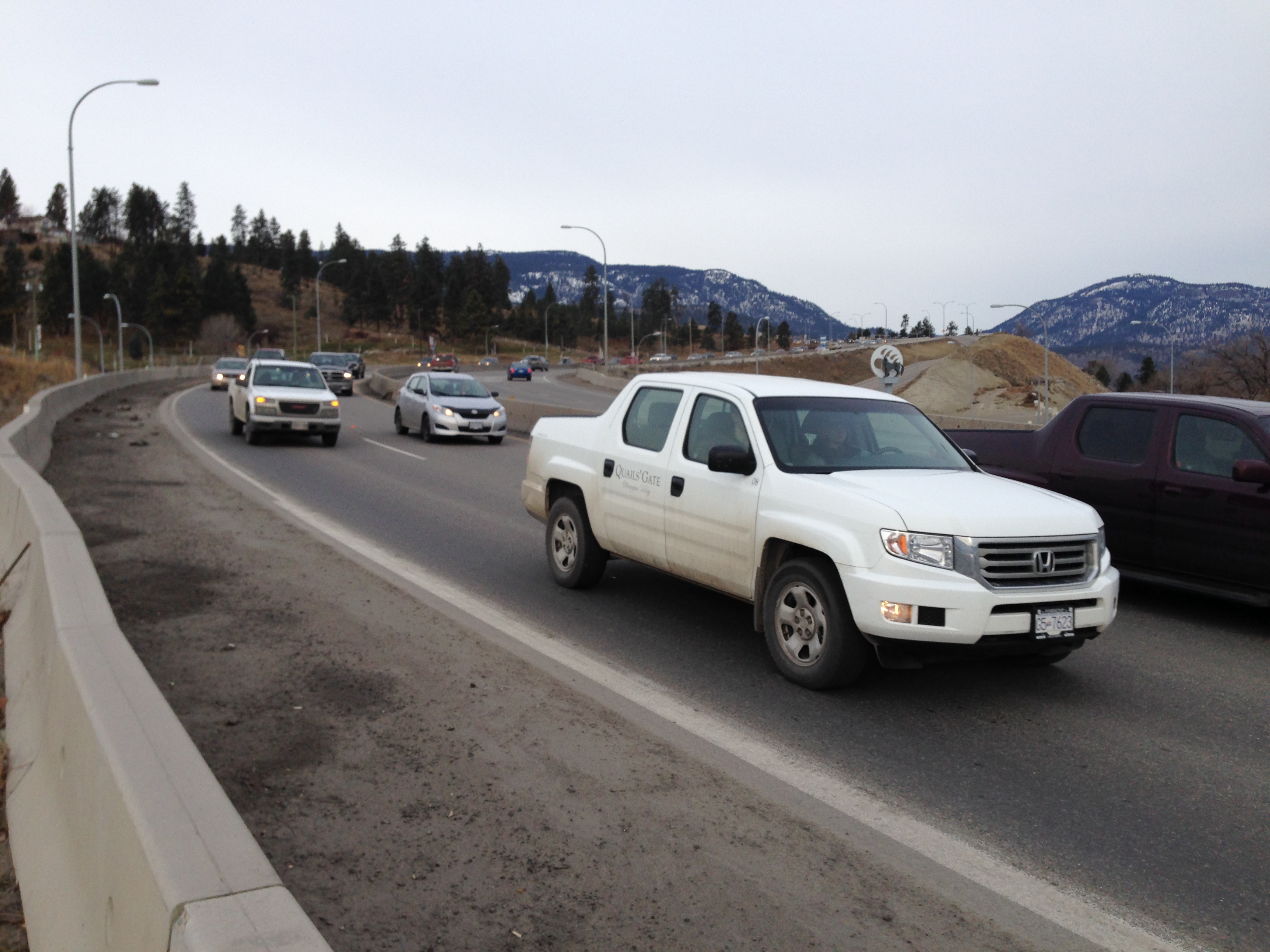 WEST KELOWNA — Traffic heading into Kelowna this morning was funneled to one lane on the Bennett Bridge.
