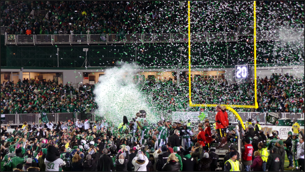 But even beyond that, above all– The Grey Cup was my favorite news story of 2013 because it was about more than just football, it brought together Saskatchewanians decked out in green, who united over the team, but ultimately bonded over our shared pride in Saskatchewan.