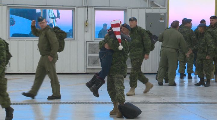 “The closer you get to home, you’re thinking of things to do. It’s Christmastime and everything like that, so it’s the best part of coming home, really, is during that time,” said Warrant Officer Mario Pelletier, whose wife, daughter and son were at the Garrison to greet him.
