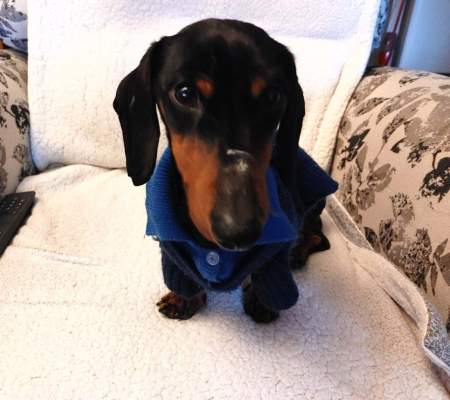 When he checked to see if it was empty, he found the emaciated dachshund covered in feces and urine. His collar had been looped through the door of the carrier, and his future looked bleak.