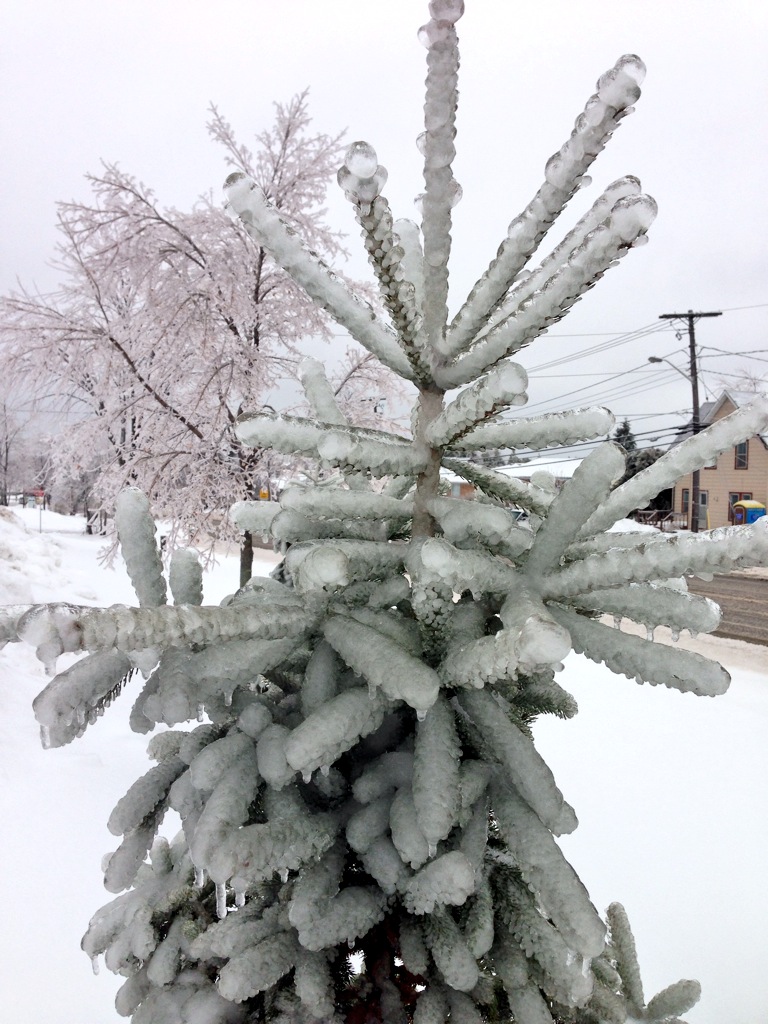 In Kingston, tree branches became encased in ice and city streets were made slick from freezing rain the night before. More than 14,000 customers in Kingston and other parts of eastern Ontario were hit by outages, according to the website of Ontario’s Hydro One.