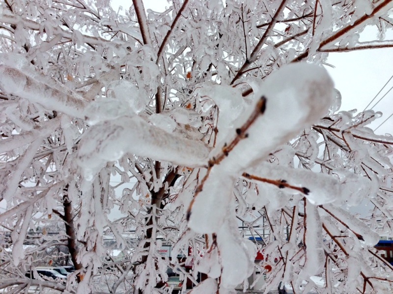 As temperatures in some areas dipped below zero, the rain began to freeze on cars, roads, hydro poles and trees.