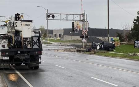 According to police, the driver of a 2024 Hyundai Tucson was travelling southbound on Tapscott Road at a high rate of speed. For reasons unknown, the vehicle mounted the west curb and left the roadway before striking a concrete pole and impacting with a railway barrier.