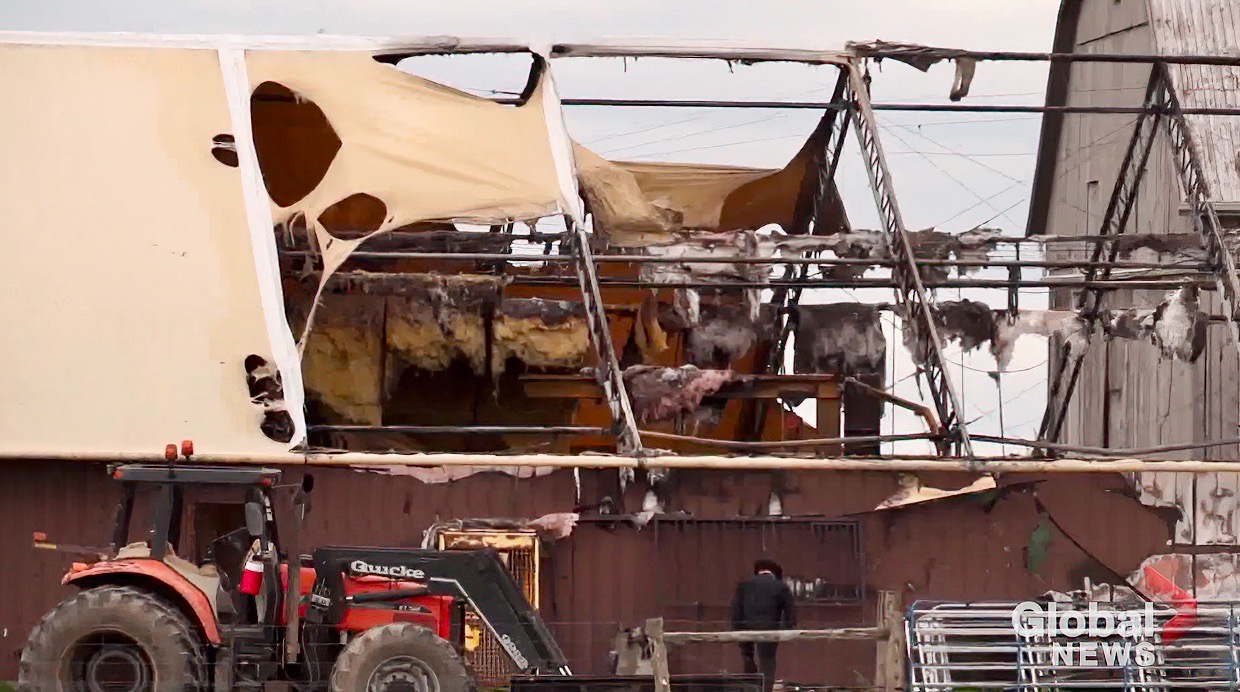 The cause of the blaze is believed to be a tractor that caught fire inside the building. Jones said the fire spread through the building and damaged other content.
