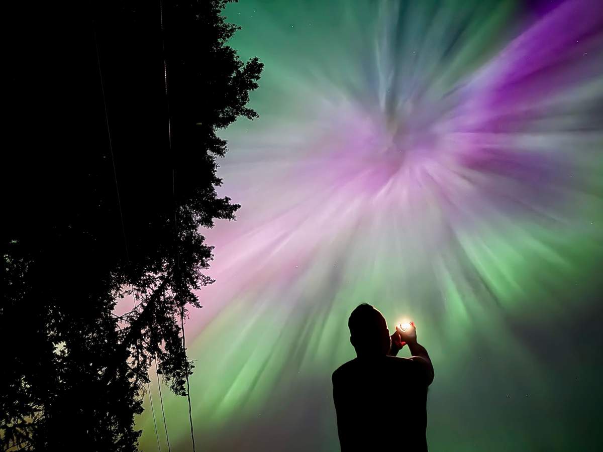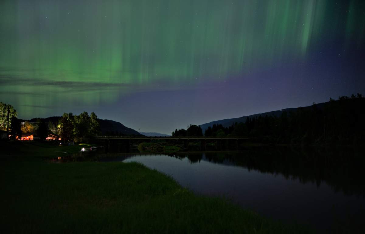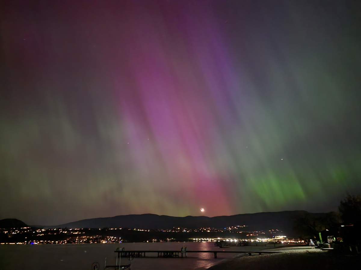 Courtesy of a powerful geomagnetic storm, British Columbia skies were bathed overnight in dancing and constantly changing hues of blue, green and purple.