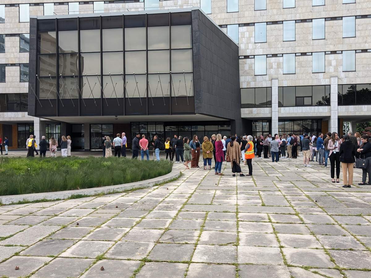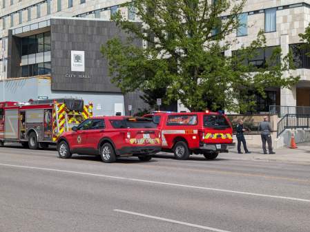 “We evacuated consistent with our emergency management protocols,” Datars Bere said outside city hall. “This kind of stuff is practised. There are fire wardens everywhere around, they know exactly what to do.”