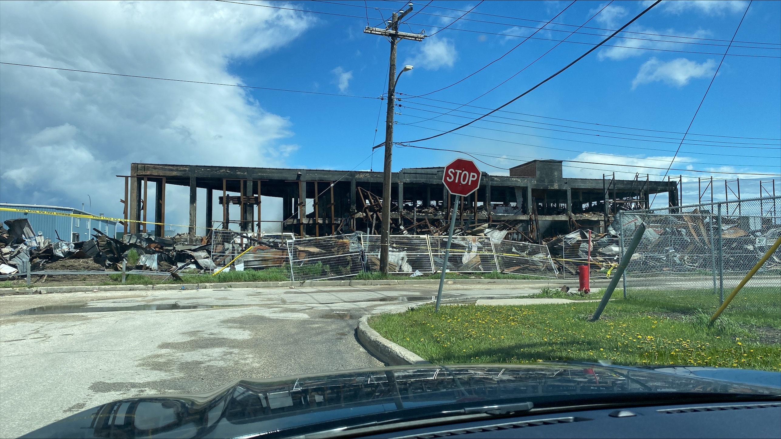Winnipeg Fire Paramedic Service (WFPS) units are working to put out a large fire at a vacant industrial building on Logan Avenue.