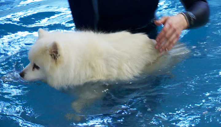 Nirumik, a 15-month-old Miniature American Eskimo, had been going to the pool for four months.