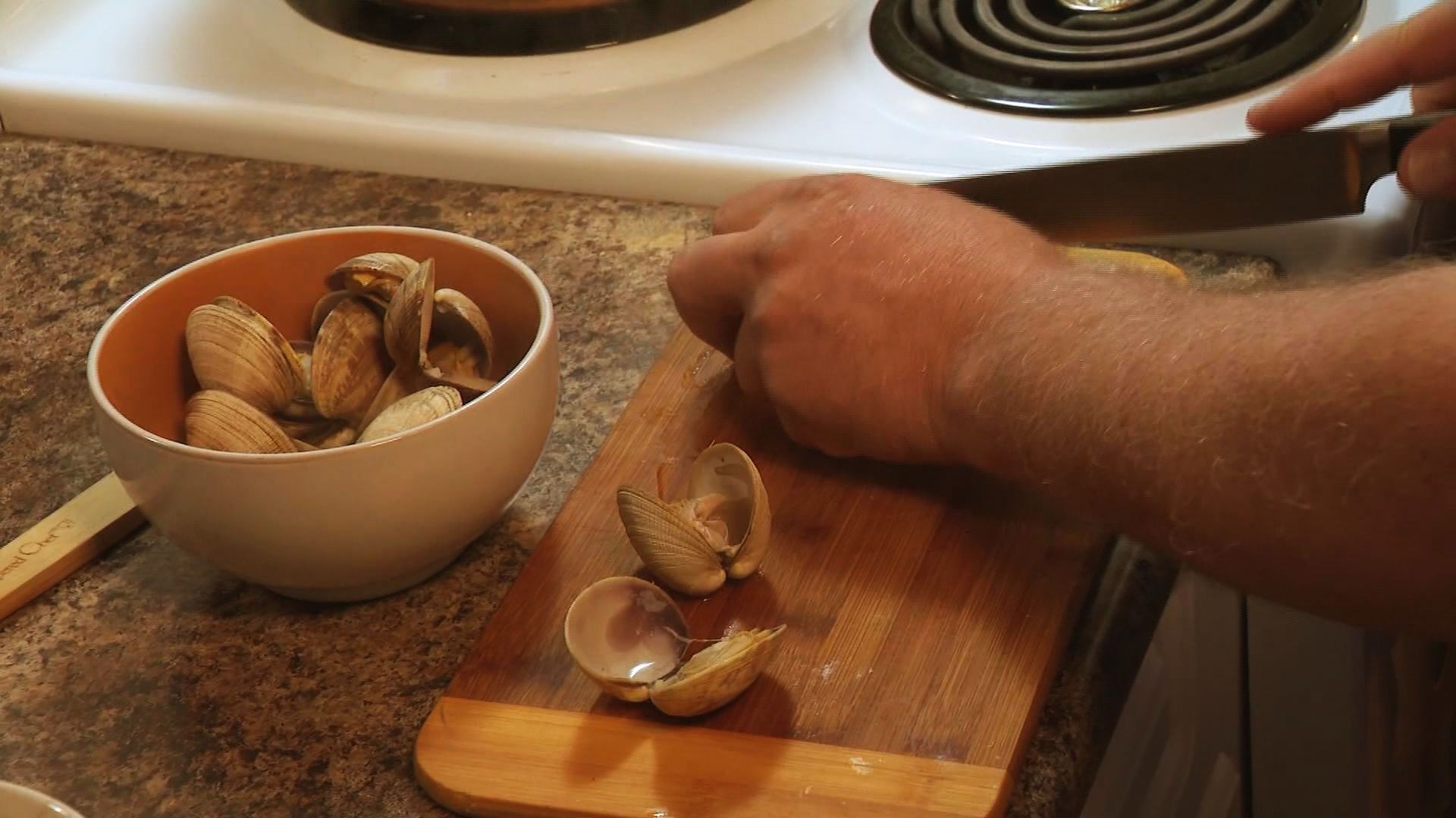 Place clams in a four-quart saucepan. Cover with about one inch of water and boil for about 15 minutes.