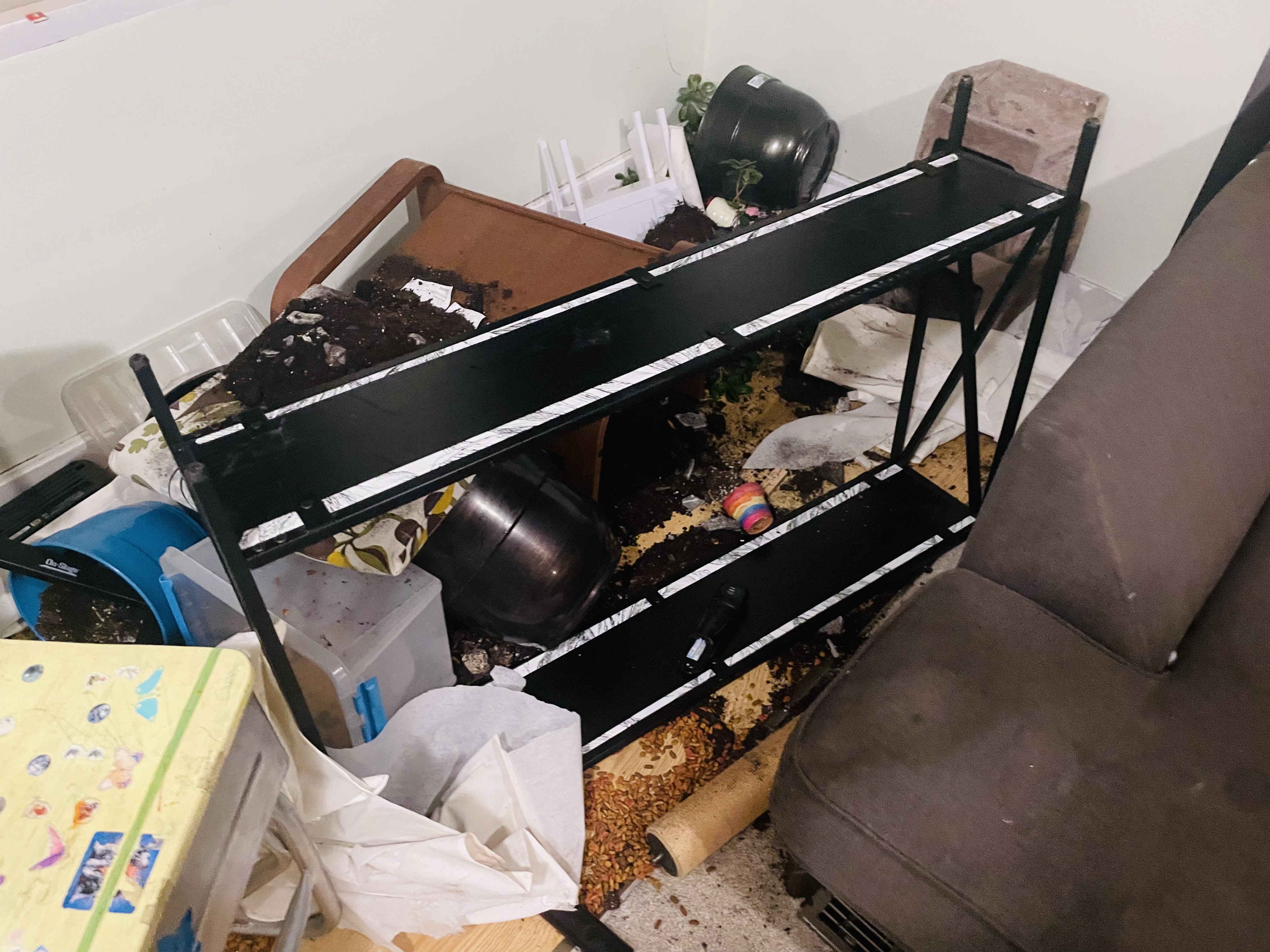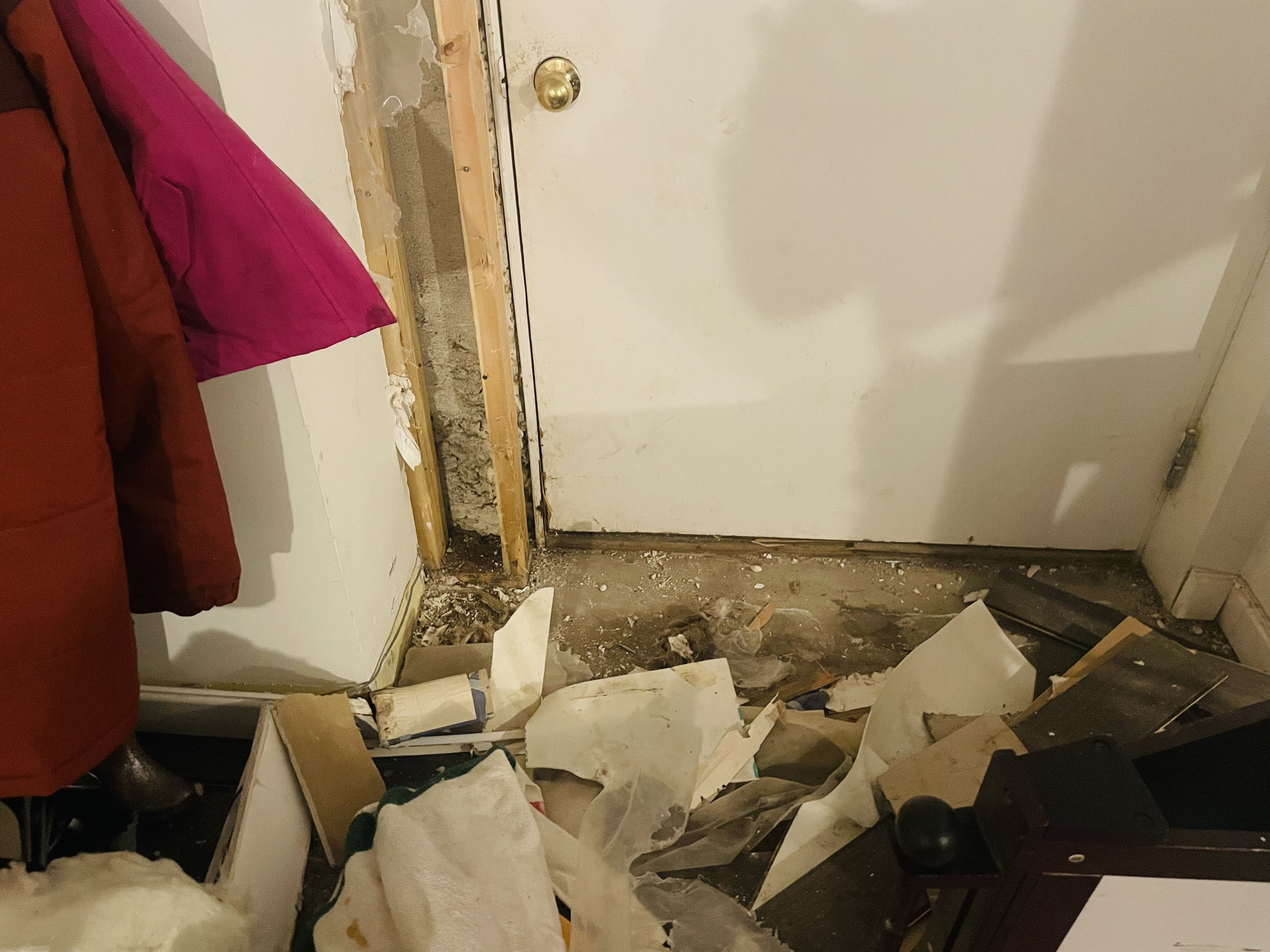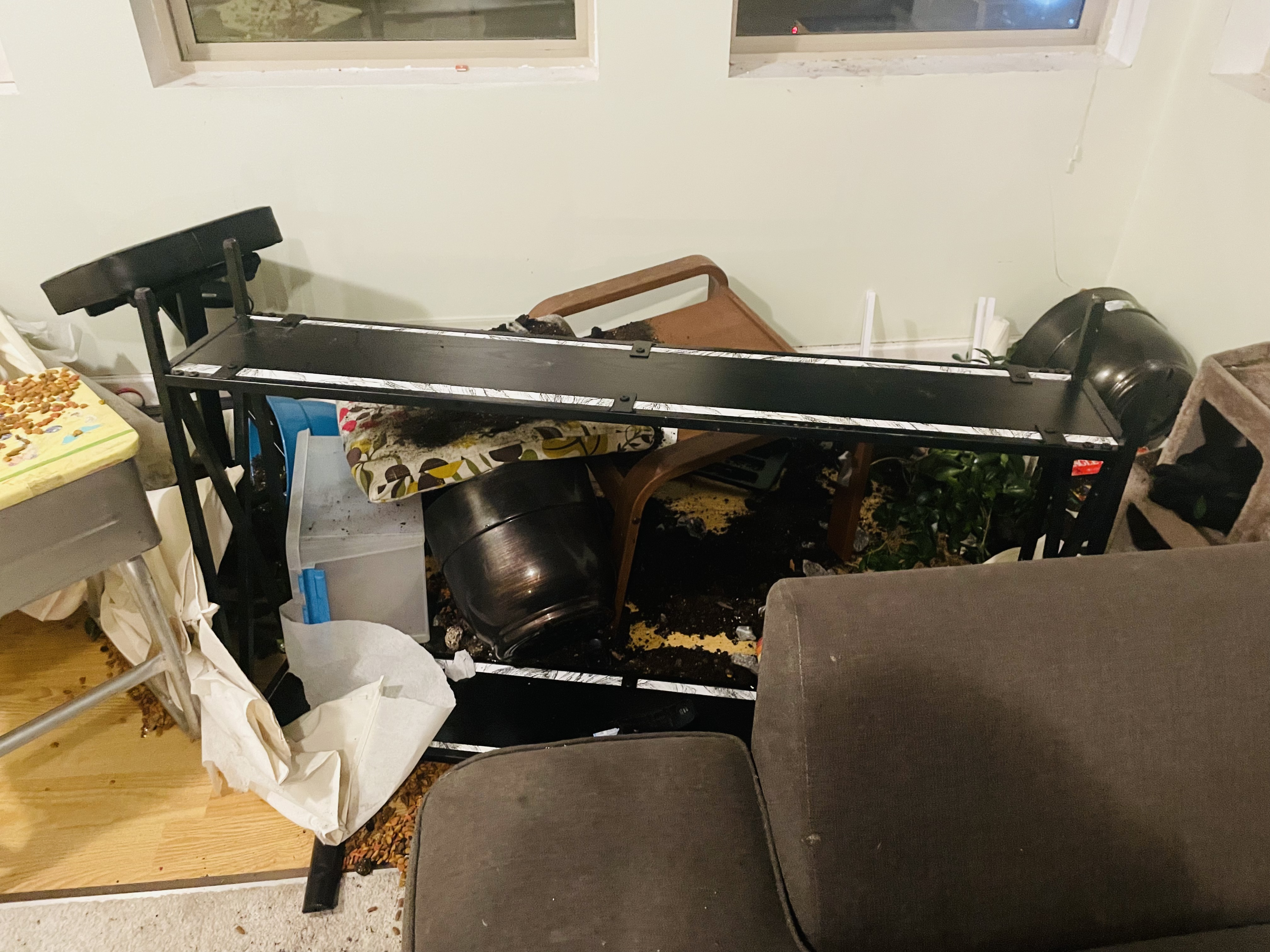 Rice describes the damage to her house as “a total disaster.” She said plants were flipped upside down and ripped up basement flooring and drywall. The bear, she added, peed on the floor. Thankfully, Rice said all costs would fall under insurance.