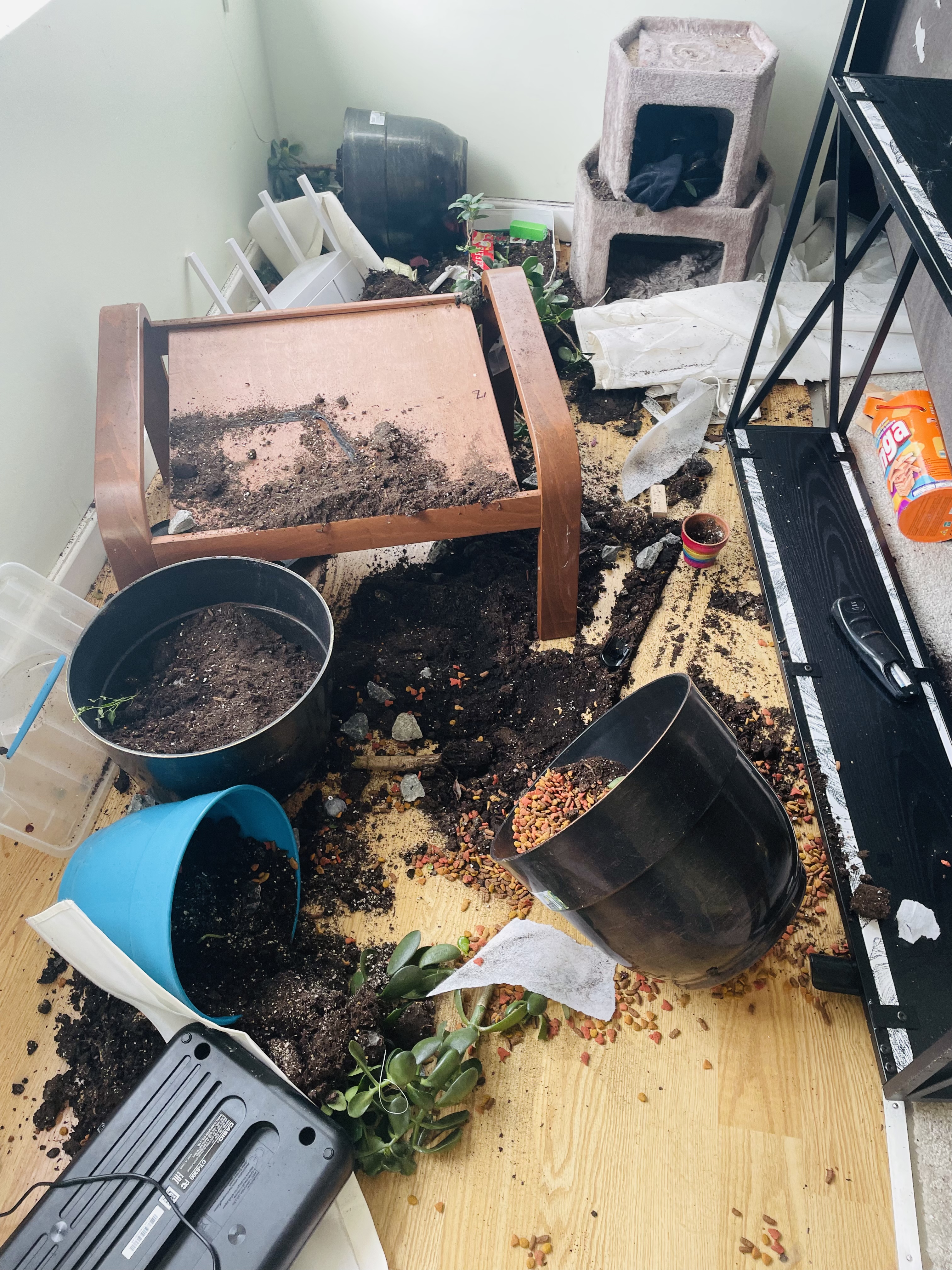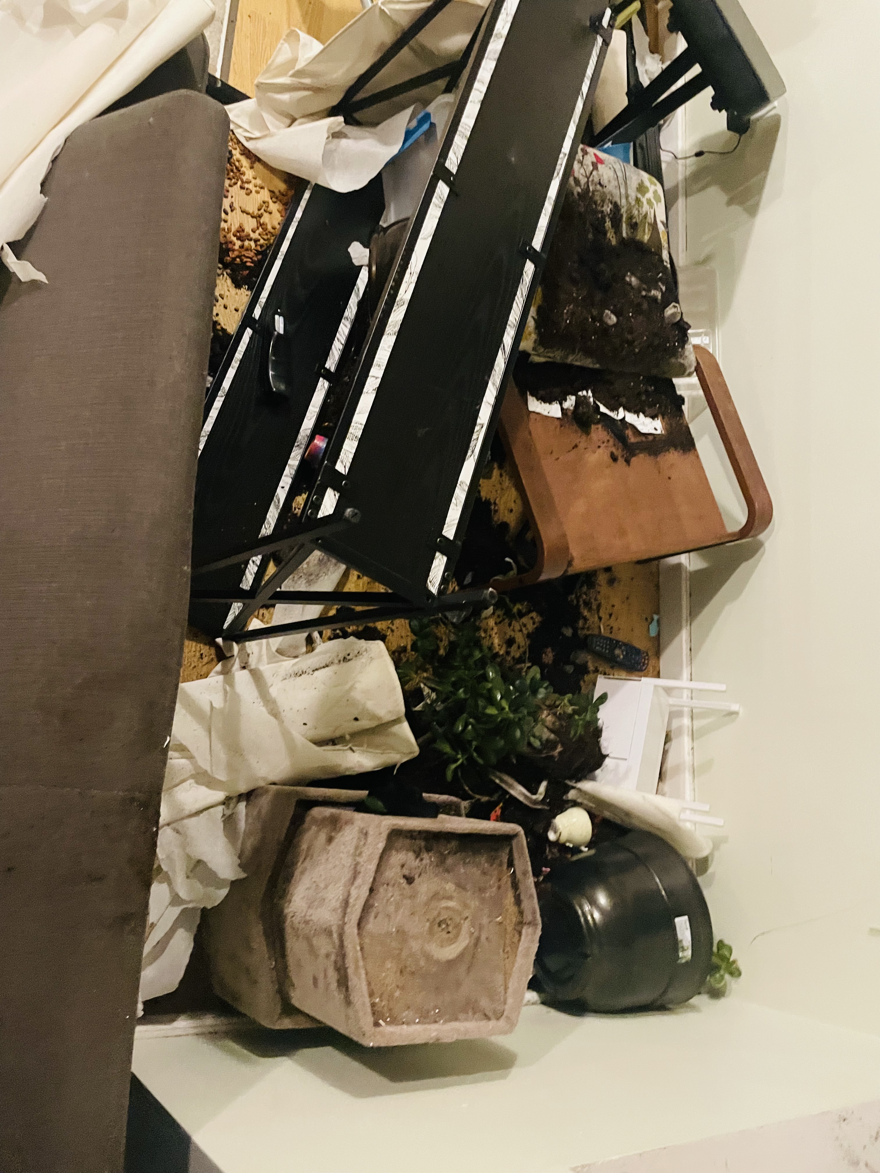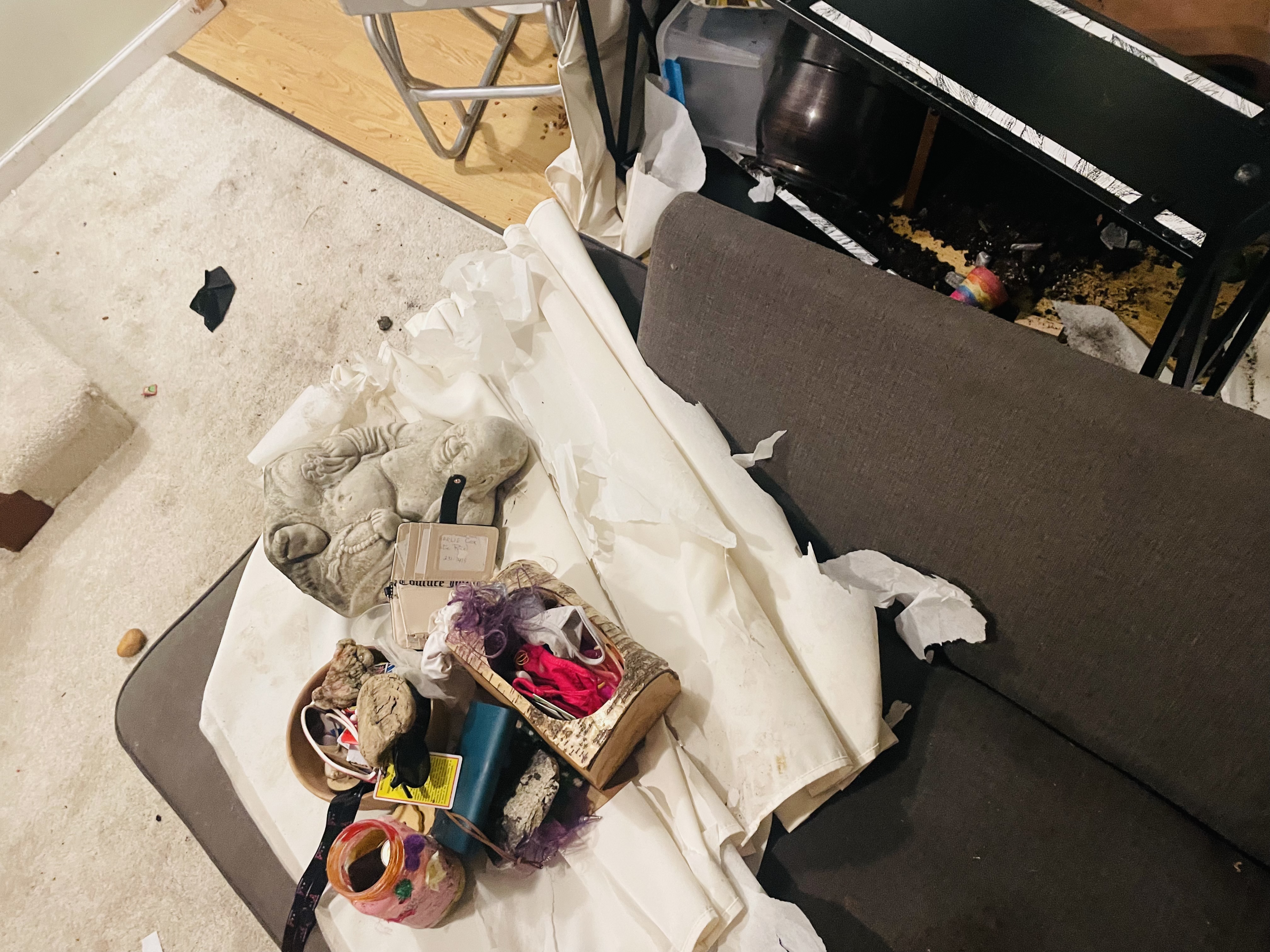 Rice describes the damage to her house as “a total disaster.” She said plants were flipped upside down and ripped up basement flooring and drywall. The bear, she added, peed on the floor. Thankfully, Rice said all costs would fall under insurance.