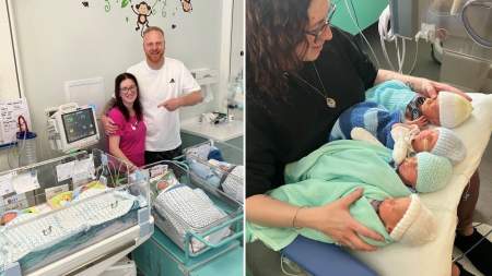 Arlene and John Mitchell welcomed their four newborn sons, Ben, Noah, Harrison and Rory, on May 14.