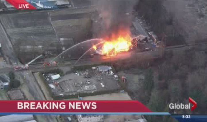 Fire crews are on the scene of a huge fire in South Burnaby that broke out Saturday morning just before 8 a.m.