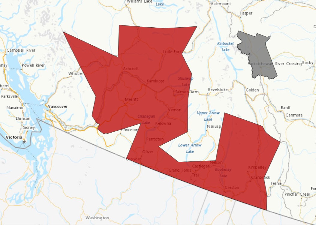 “The temperatures have slightly moderated in the Southern Interior but will remain elevated at or near warning criteria,” said Environment Canada.