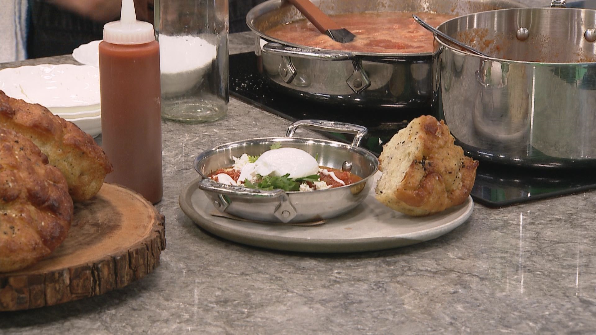 To assemble the dish, add a dollop of yogurt on top of the shakshouka