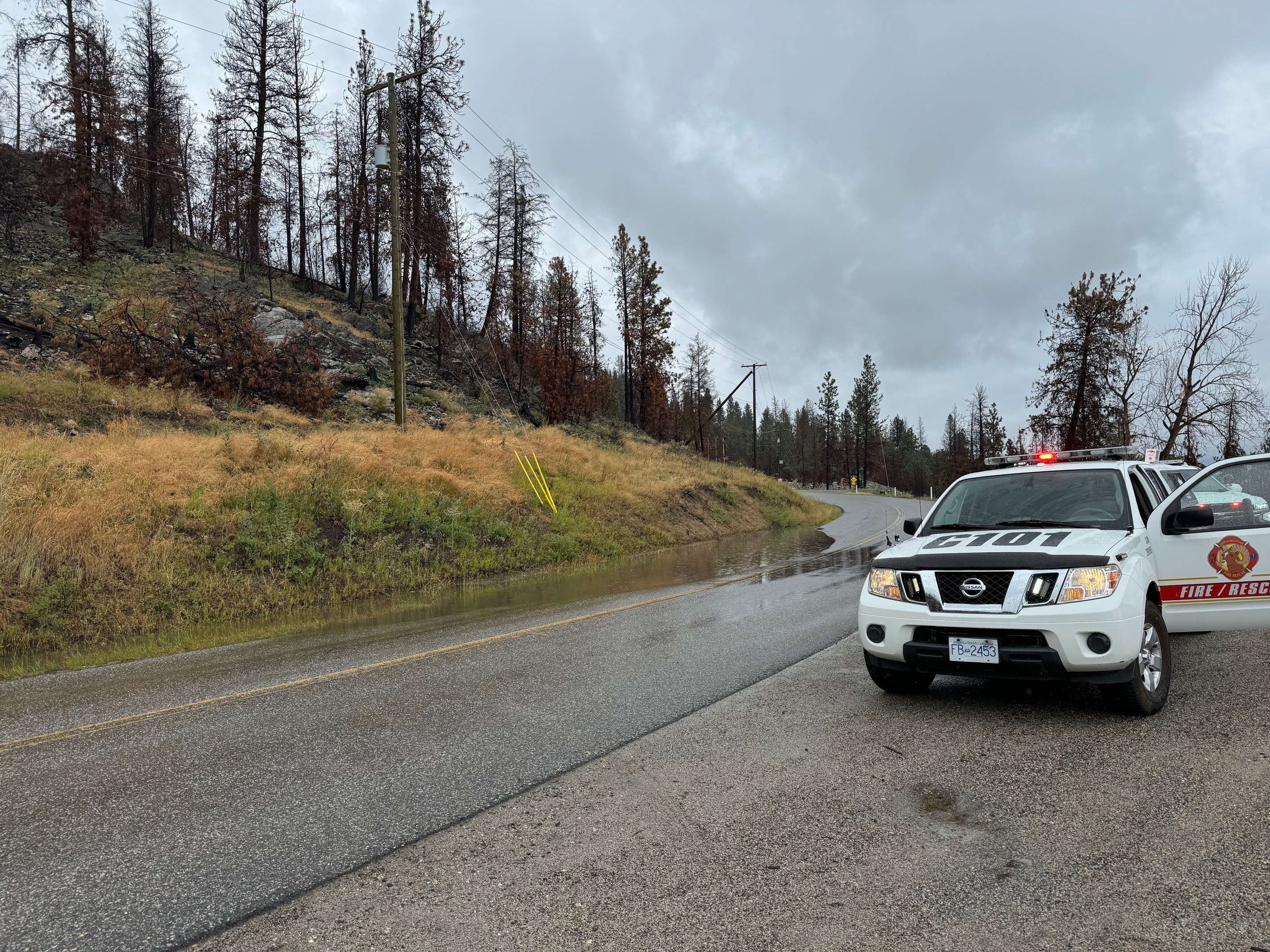 A deluge of rain has caused issues near the fire-ravaged neighbourhoods on Westside Road in the Central Okanagan.