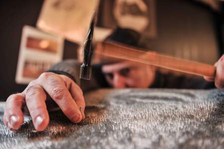 It can take between three days and two months to complete one 3D hammered masterpieces and can require anything from 15,000 to 50,000 plus nails.