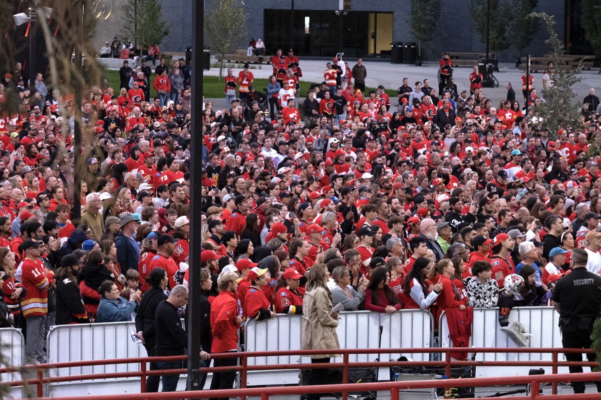 Fans gathered on the front steps of the Scotiabank Saddledome on an emotional Wednesday night as the Calgary Flames held a candlelight vigil for Johnny Gaudreau and his brother Matthew.