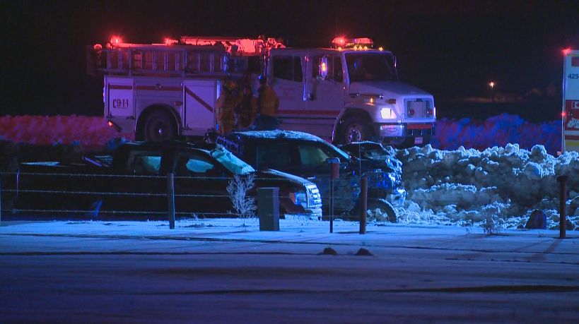 Morinville RCMP say a man driving a truck east on Township Road 554 was unable to stop on the icy, gravel road, causing it to slide into the intersection at Highway 28. The truck was then hit by another truck headed south on the highway.