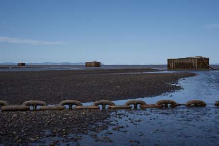 The four moorings are made of concrete-filled railcars connected to giant chains, and were to be used for a tidal project by Occurrent Power but were left in the staging area after the company declared bankruptcy Aug. 29.