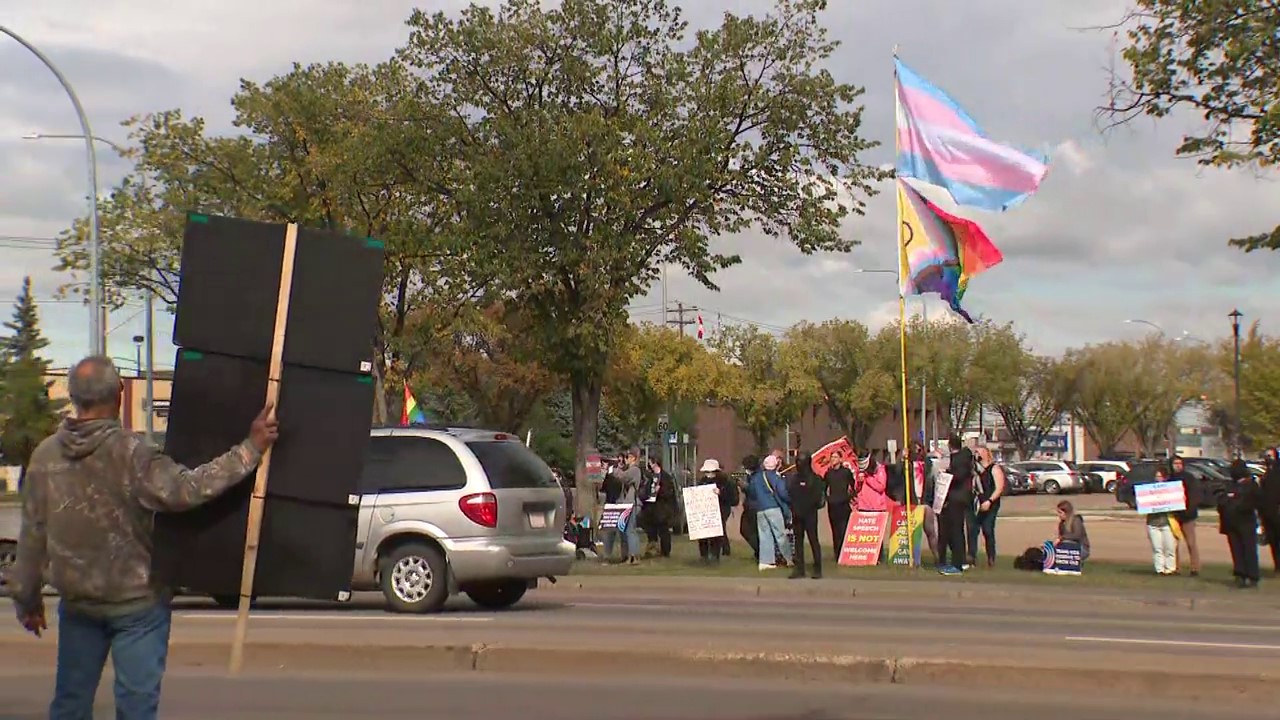 A protest, and subsequent counterprotest, was held in west Edmonton on Friday surrounding sexual orientation and gender identity policies in schools.